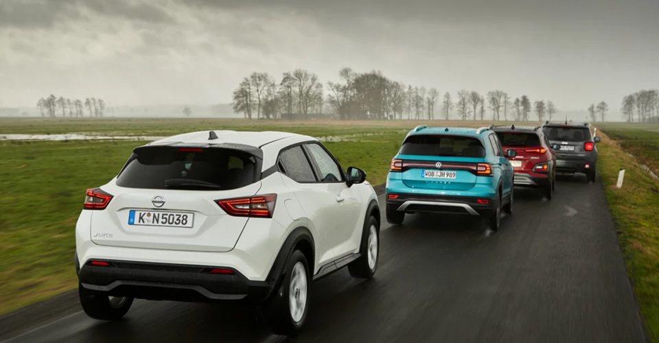 Nissan Juke, VW T-Cross, Hyundai Kona и Jeep Renegade — вывод